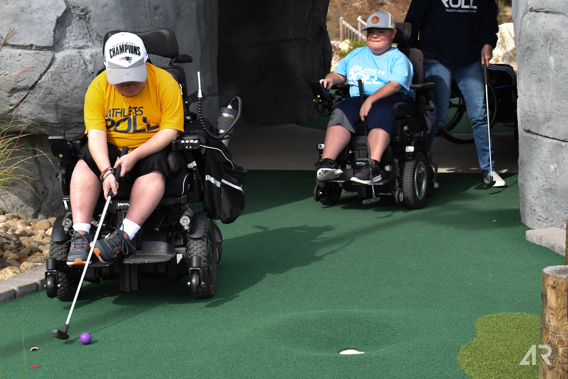 Mini golf outing hosted by Athletes Roll at an accessible course at Chuckster's Hooksett.
